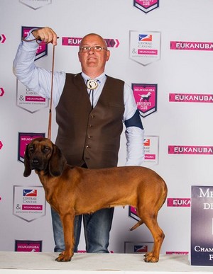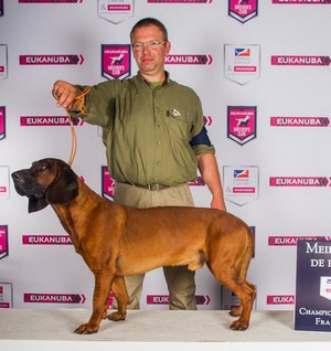 - GLAMOUR (CESAR du LISENBERG & BETTY du VALLON FROID), née le 12 juin 2011 en France et appartenant à Raymond Limousin, déjà titulaire du titre de Championne de France en 2014, a été honorée par un 1er Excellent en classe Champion, et du CACIB.