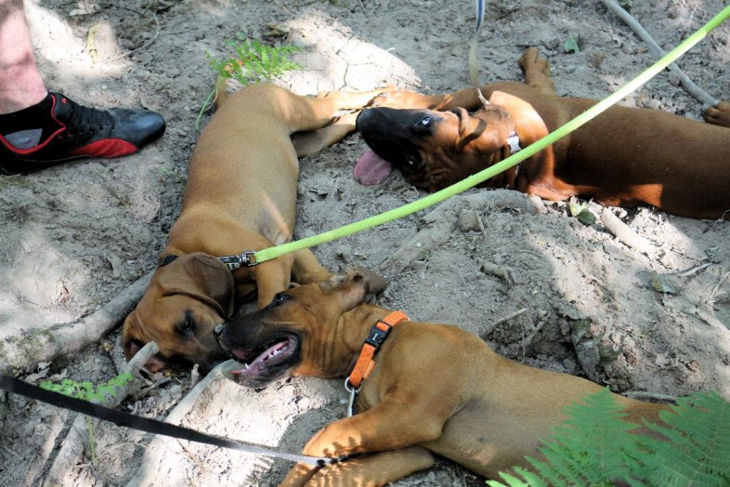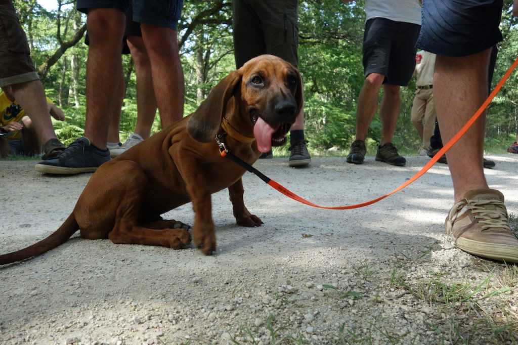 Malgré la forte chaleur de ce week end, la présence de nombreux chiots et jeunes chiens a permis une mise en pratique en forêt des éléments présentés en salle.