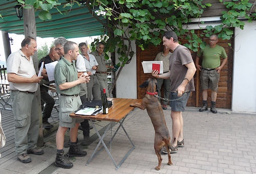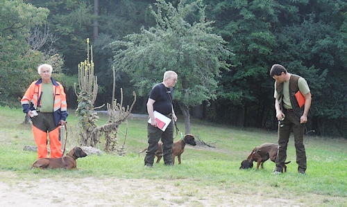 Cette année, il n’en fut rien, et c’est par une magnifique matinée que les 8 concurrents se sont présentés avec leur chien (2 chiens de Rouge du Hanovre et 6 chiens de Rouge de Bavière); un effectif réduit par rapport aux records de participation déjà enregistrés pour l’épreuve Alsacienne, car les bons taux de réussites des épreuves précédentes associés à l’imminence du TAN d’Arc en Barrois qui allait suivre avaient limité le nombre d’inscriptions.