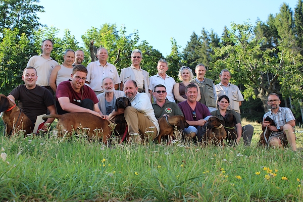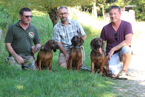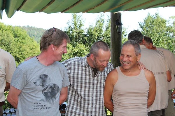 7 équipages (dont 2 chiens de Rouge de Hanovre et 5 chiens de Rouge de Bavière) se sont présentés au rendez-vous du Saint Alexis sur la commune de Kaysersberg pour démontrer leurs aptitudes sous l’oeil du jury composé de Jacques Puthod, Dominique Duvoid et Fernand Vandenput pour le premier groupe de 4 chiens (dont deux membres BGS de la même fratrie « entre Sûre et Semois » – Bruno Harbackens & Java du Domaine de Chambord), et de Christophe Missland et Francis Prignitz, assistés de Gilles Sinicco en tant qu’élève juge, pour le second groupe constitué de 3 membres BGS de la fratrie « de la Belle Jeanne » (Maestro de la Croix Valentin & Janka des Treize Fontaines).