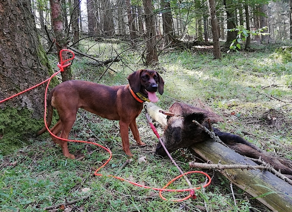 • ROX entre SÛRE et SEMOIS, chien de Rouge de Bavière mâle né en Belgique le 15 août 2018 et conduit par Romain de Fauw;