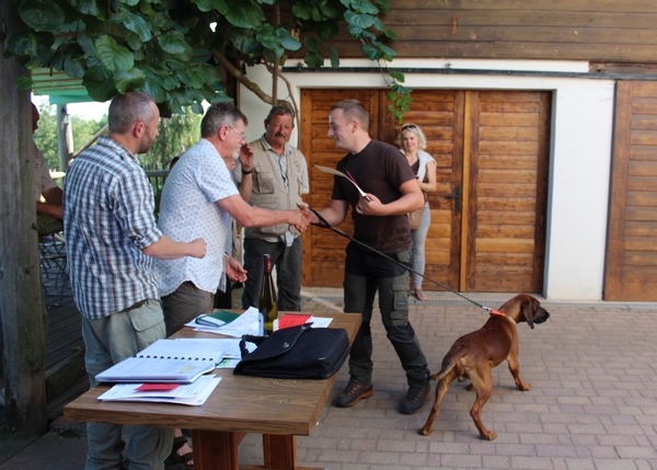5 des 7 chiens présentés sont arrivés au bout du pistage après une quête réussie. Le comportement devant le gibier mort s’est révélé satisfaisant, mais la dépose a malheureusement fait « trébucher » un chien jusqu’à l’élimination, avec néanmoins l’agréable perspective d’inaugurer le nouveau règlement qui lui permettra de se présenter à une prochaine épreuve uniquement pour cet exercice.