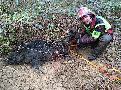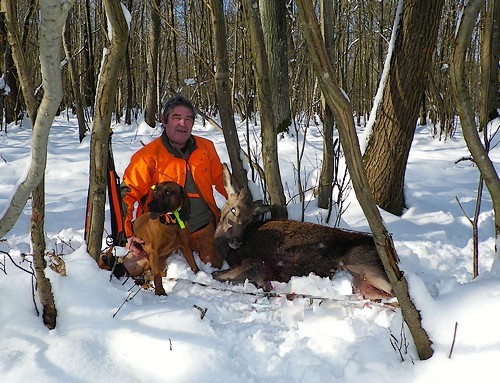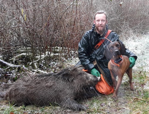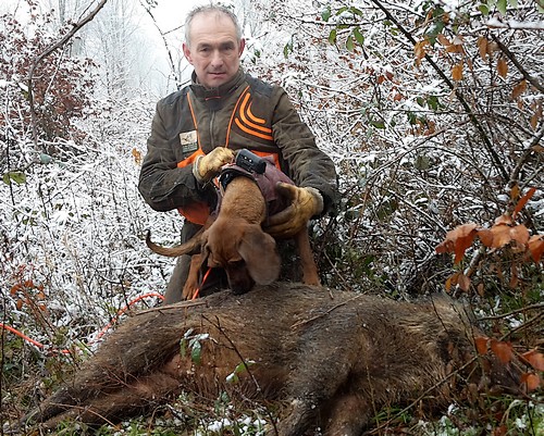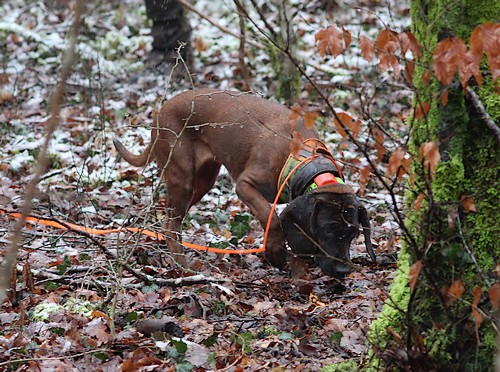En forêt de Rambouillet ensuite, le 10 février, où Robert Brand a eu l’occasion de juger Jypie vom Thurwald (Asko vom Tristkopf & Ursi von der Schorfheide), chien de Rouge de Bavière femelle âgée de 4 ans, conduite par son propriétaire Mr Philippe Guillin. Reprenant une recherche entamée la veille sur un hère blessé de patte arrière, l’équipage a délivré un beau travail en bloquant l’animal à l’issue d’un long pistage et d’une poursuite soutenue dans des conditions météorologiques qui pouvaient être délicates. L’équipage emmené par Philippe Guillin améliore ainsi la notation qu’il avait obtenue en début de saison, pour un Brevet de Maitrise de niveau 1.